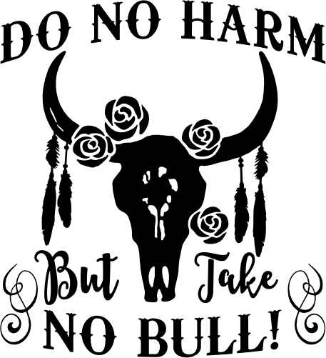 Item No. (003-15-D) Floral Cow Skull Do No Harm but Take no Bull