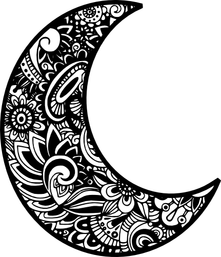 Item No. (011-01-T3) Crescent Moon Zentangle Mandala Floral Doodle