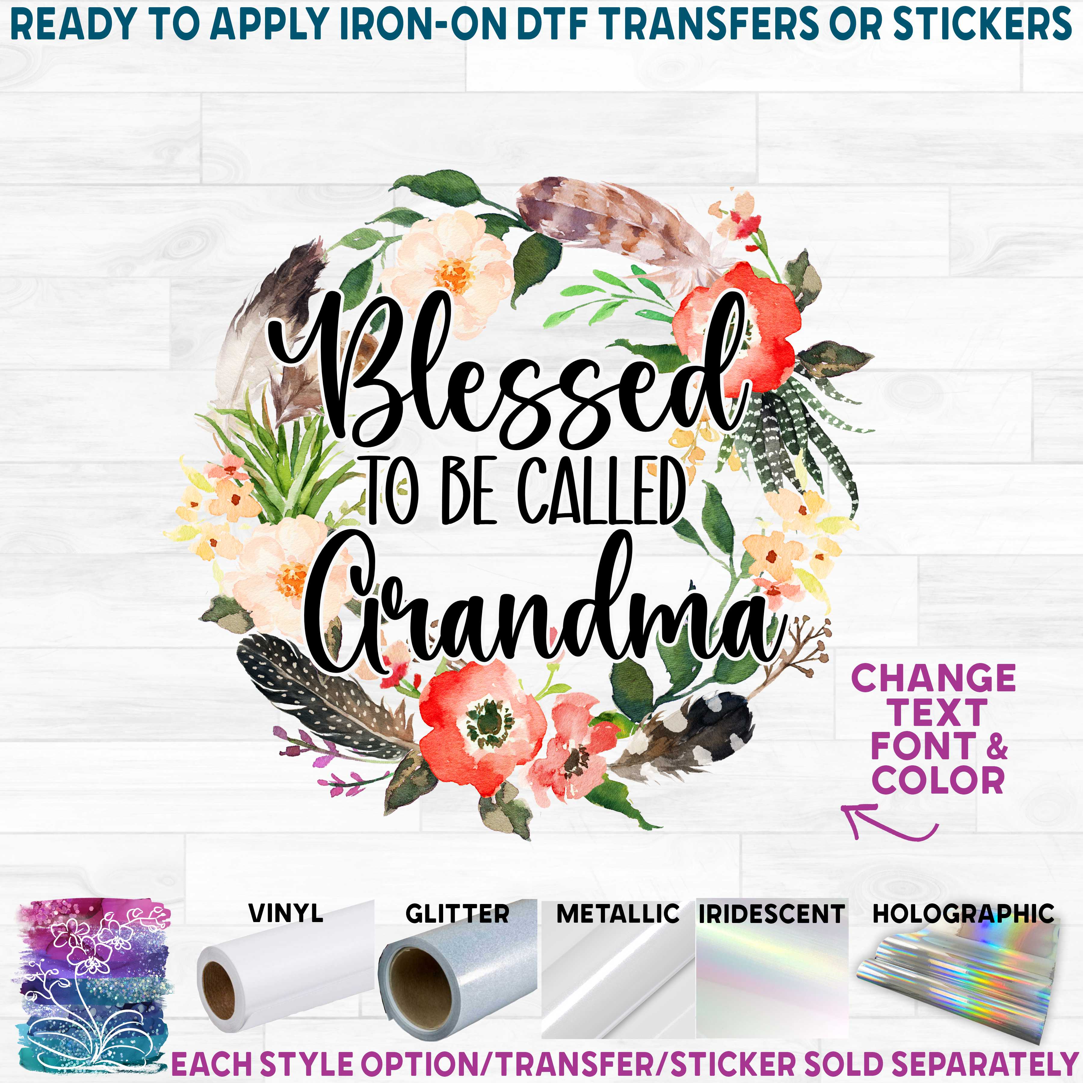 Item No. (013-02-B) Big Sister, Little Sister, Custom Text Succulent Garden Flower Feather Watercolor