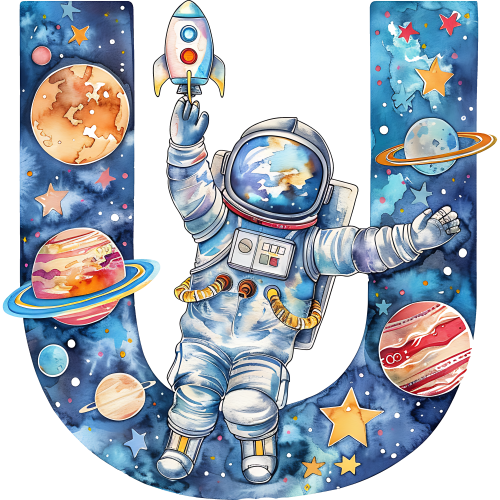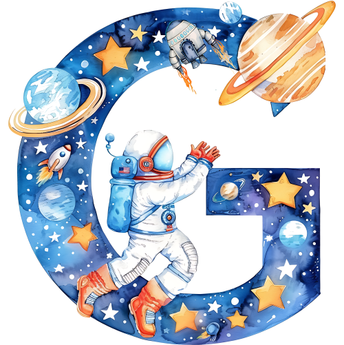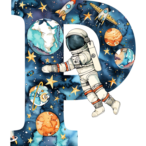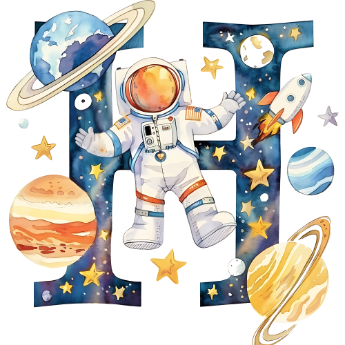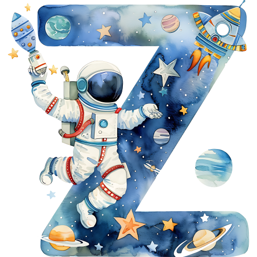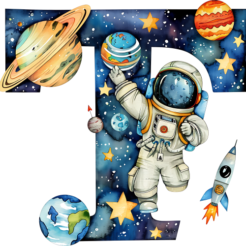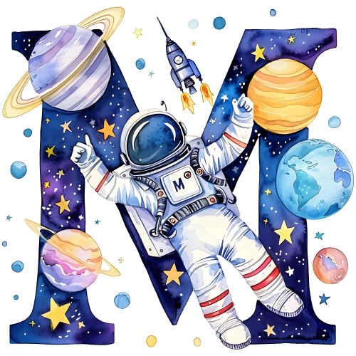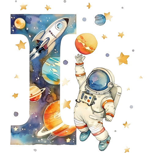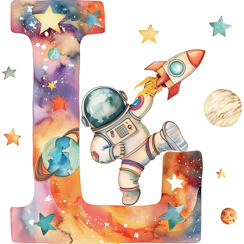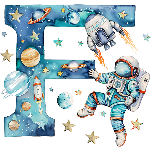 Item No. (369-06) Space Galaxy Astronaut Monogram Letter All Letters A-Z
