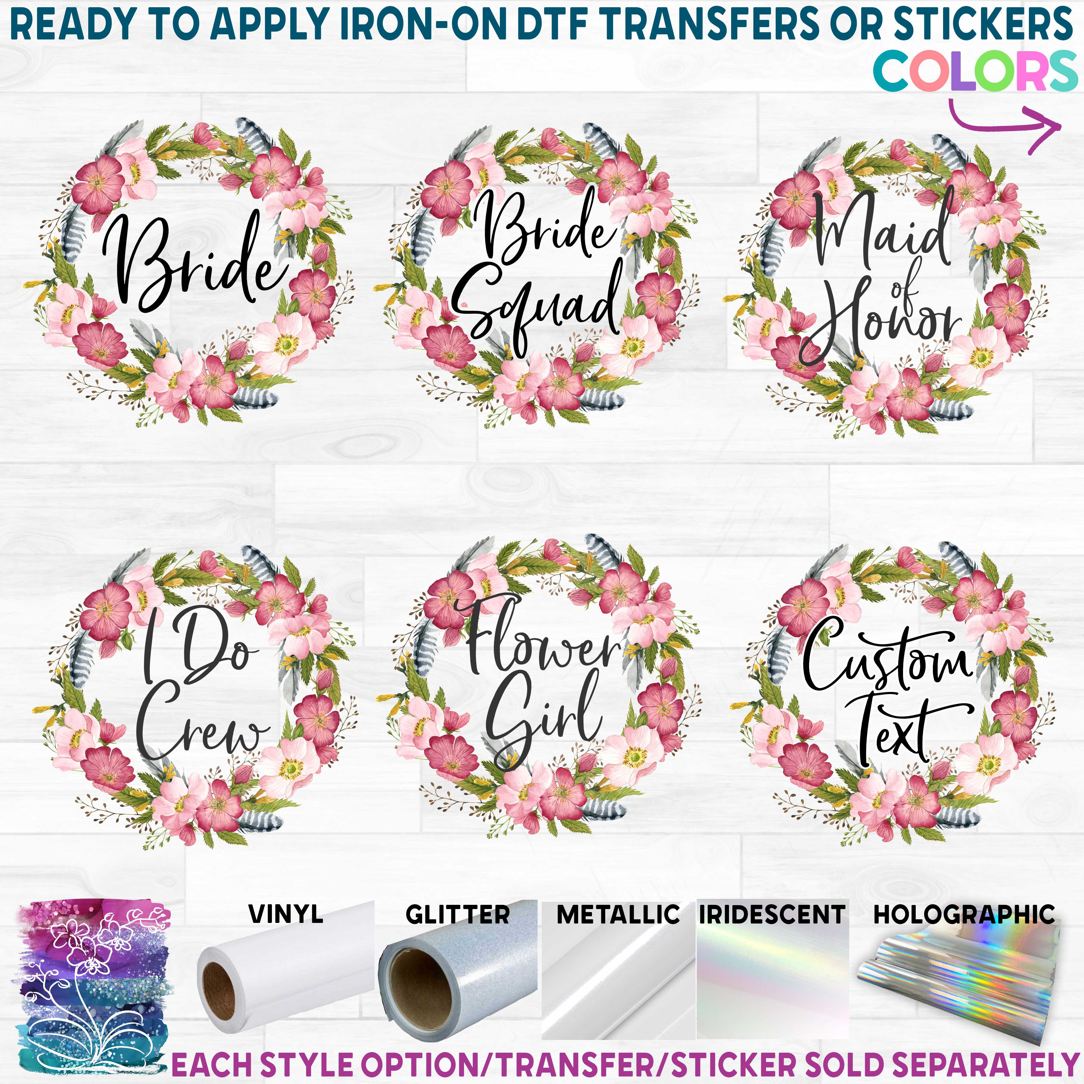 Item No. (s002-7) Bridal Wedding Party Pink Rose Floral Flowers Watercolor Custom Text
