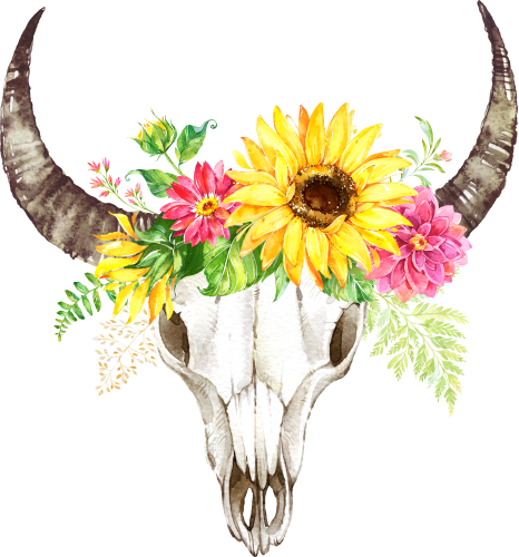 Item No. (s045-1-B) Cow Skull Sunflowers