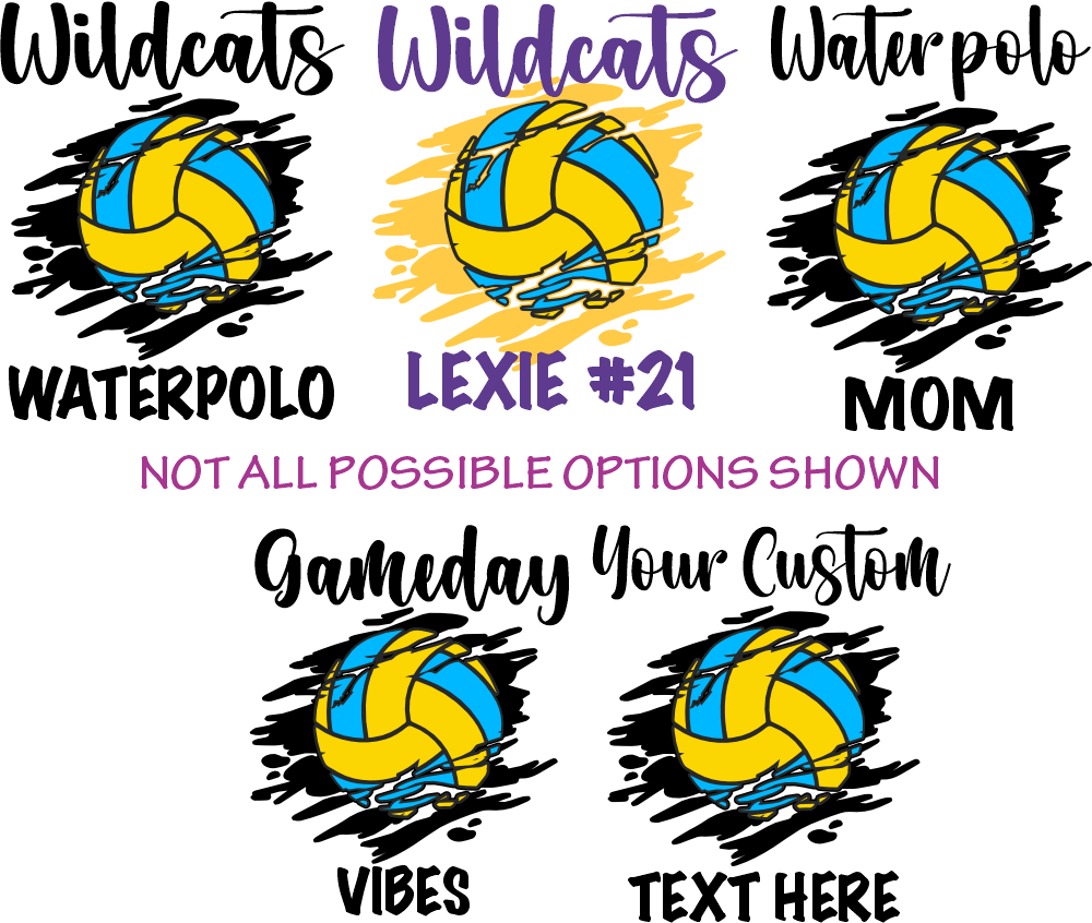 Item No. (s054-8D) Water Polo Team Name Family or Custom Text Custom Text