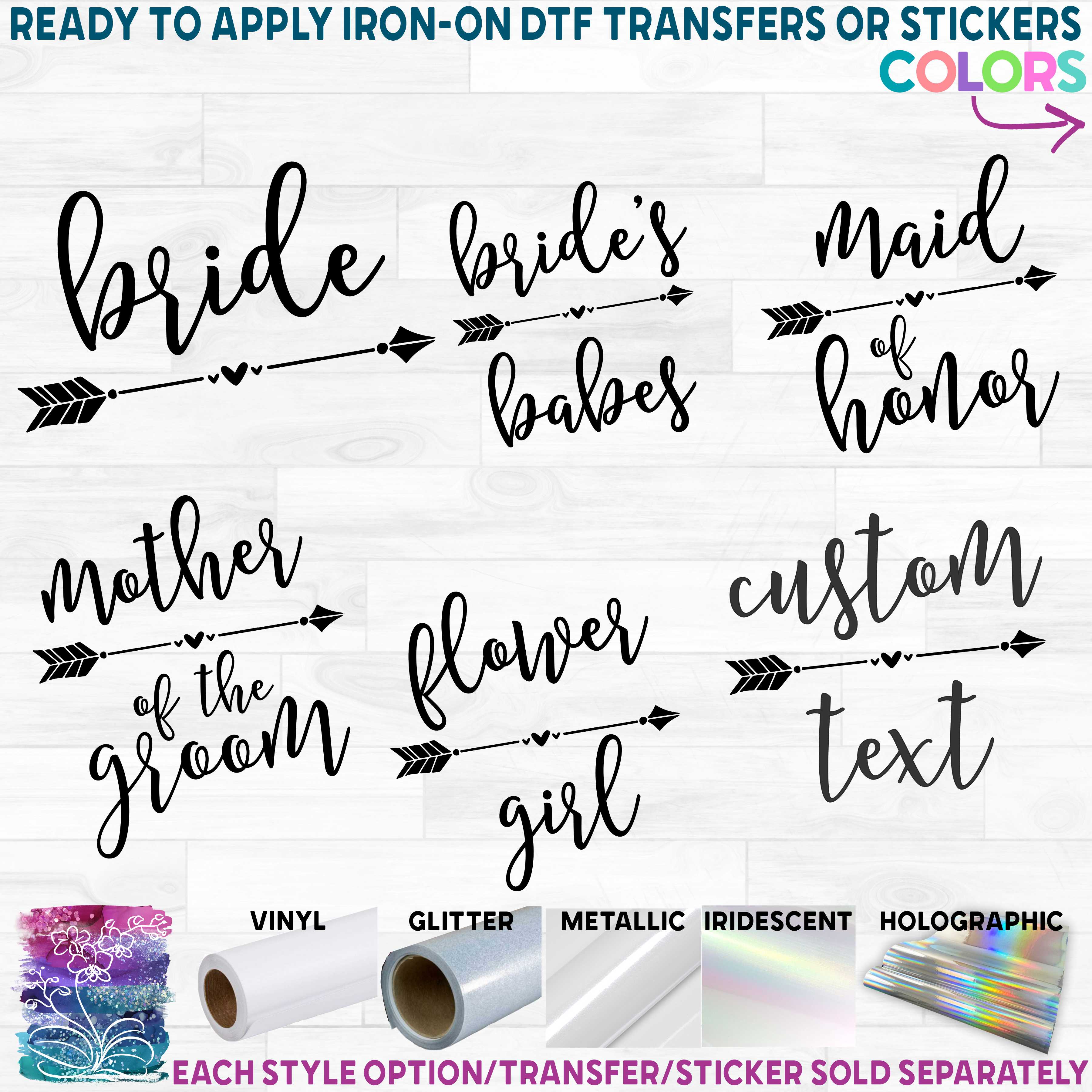 Item No. (s122-V) Bridal Wedding Party Arrow Custom Text